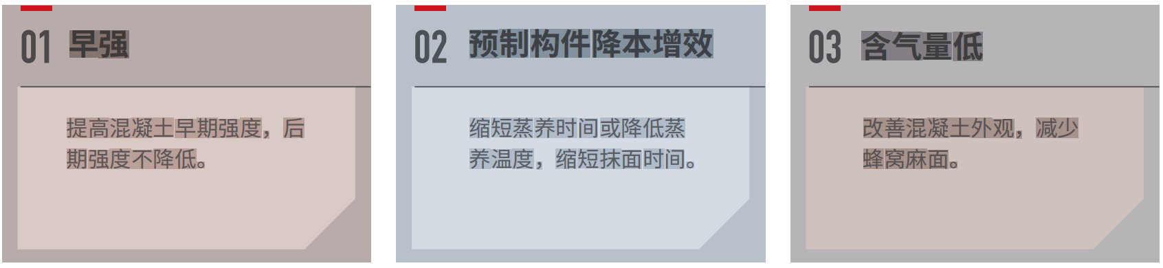 提高混凝土早強(qiáng)強(qiáng)度且后期強(qiáng)度不降低、縮短混凝土凝結(jié)時(shí)間。